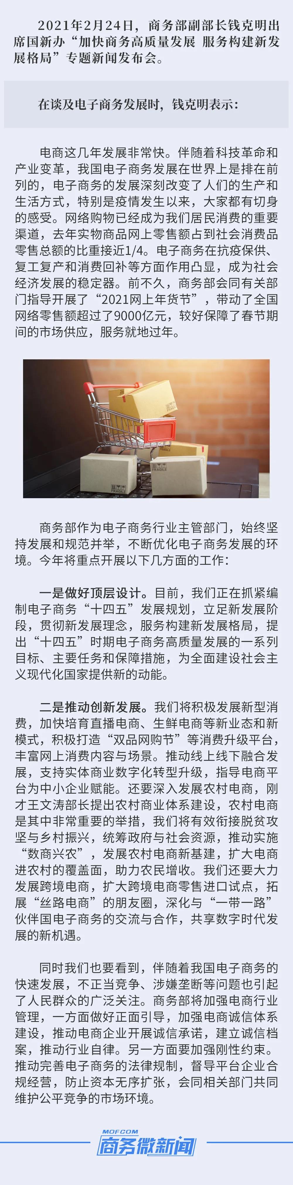 商務(wù)部副部長(zhǎng)錢(qián)克明:2021實(shí)施“數(shù)商興農(nóng)”,拓展“絲路電商”